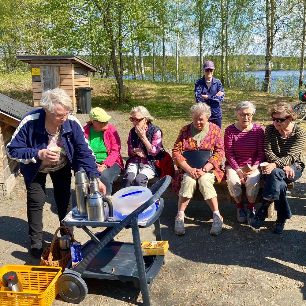 Kevätkauden 2024 viimeinen "kerhoilta" vietettiin Kirkonjyrhämän laavulla klo 13 alkaen. Maastopalovaroituksen vuoksi makkaroita ei paisteltu, mutta makoisat pullakahvit ja jätskiä nautittiin. Kova puheensorina kuului joka puolella, jotain tanssiaskelistakin puhuttiin. Paikalla kävi 34 jäsentä.